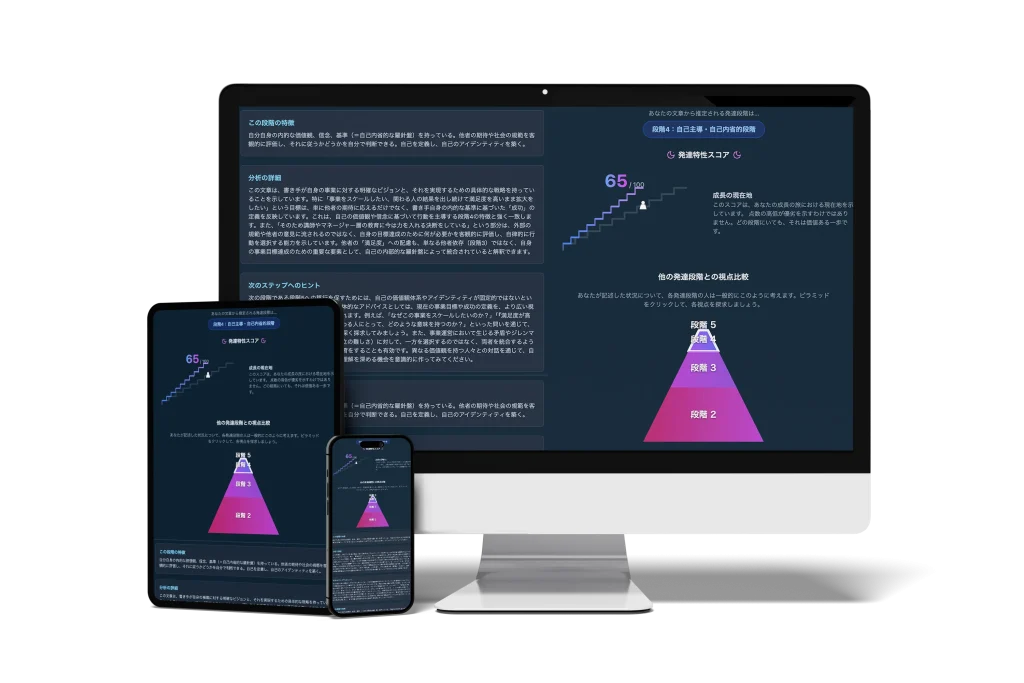 心理学専門家が監修したAIツールを活用し、「あなたが考えていること」に対して的確なフィードバックを返します。だからこそ、他では得られない “自分専用の理想を叶える地図” が手に入ります。